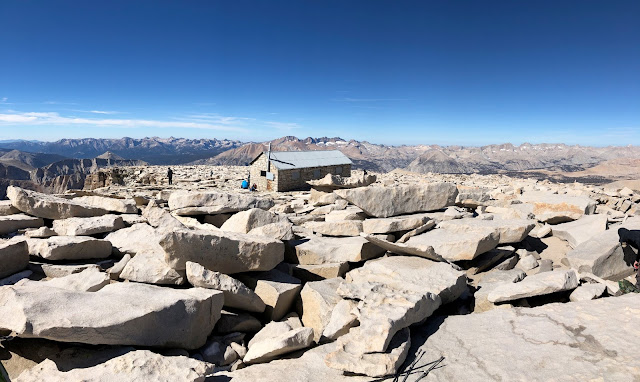 And there it is! The Mount Whitney Summit Shelter!! This shelter was built in 1909 and still stands tall and strong to this day. Although this is called a shelter, it's actually recommended to stay away from it during a storm as it is not a good place to shelter from lighting. But it's a landmark and shows us that we are almost there!!