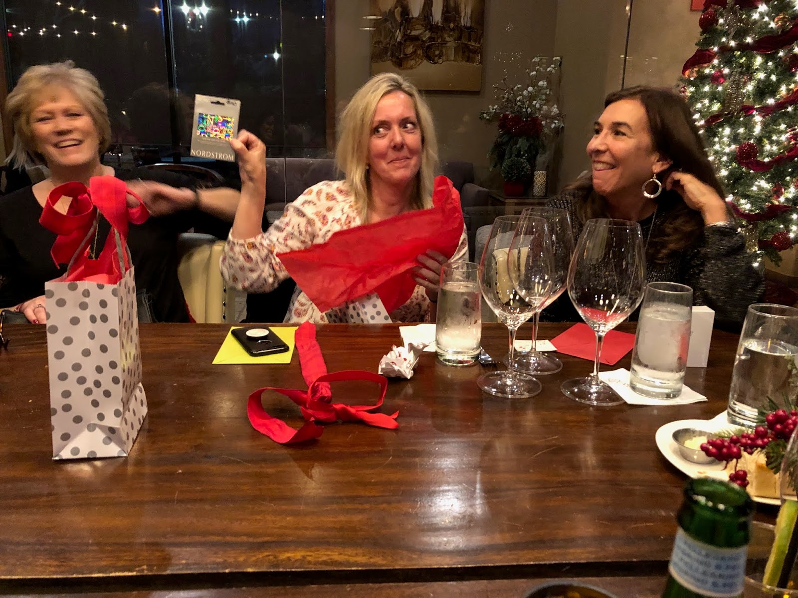 Cecily opening her Origami Owl Secret Santa gift from Diane.
